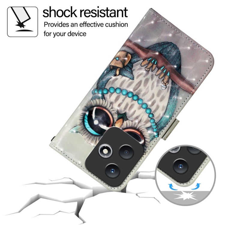 Funda para Infinix Hot 30 Play y Hot 30 Play Nfc de Cuero con Tapa Horizontal y Pintura 3D (Búho Gris)