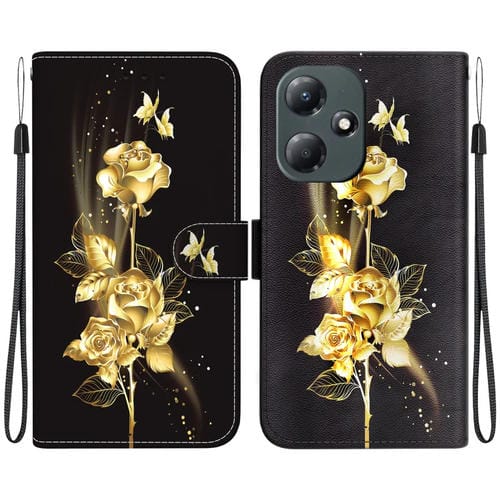 Funda para Infinix Hot 30 Play X6835 de Cuero con Dibujo Coloreado y Textura de Cristal (Mariposa Dorada Rosa)