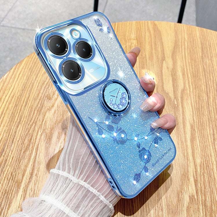 Estuche para Infinix Hot 40 con Anillo de Flor Inmortal y Brillo Degradado (Azul)