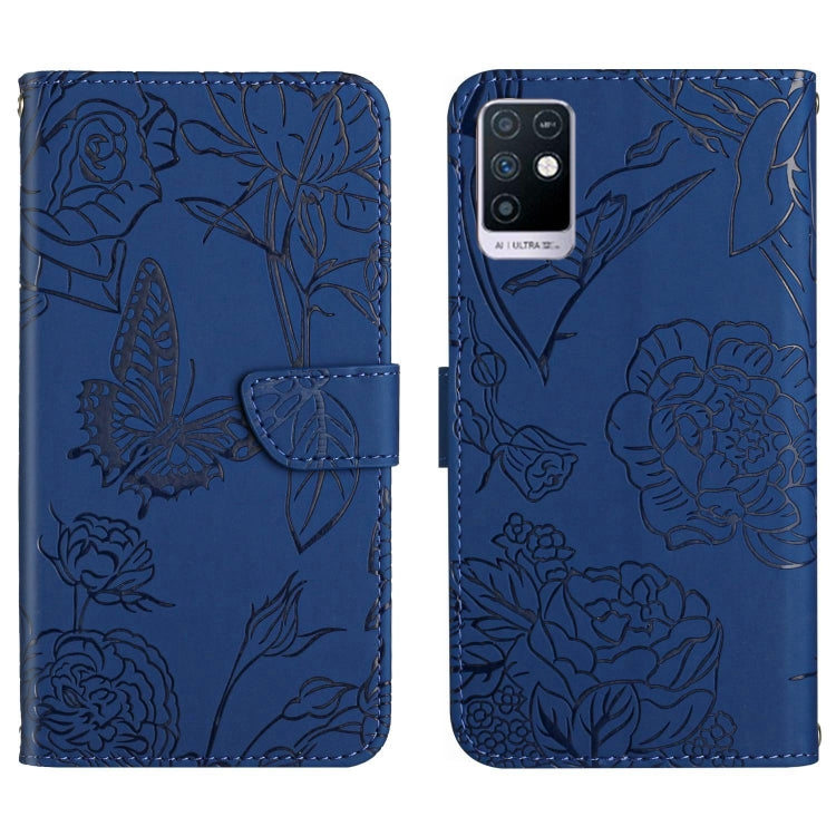 Funda de Cuero para Infinix Note 10 HT03 Skin Feel Butterfly con Tapa en Relieve (Azul)