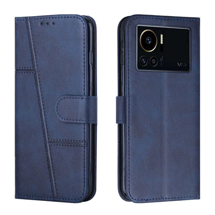 Funda de Cuero para Infinix Note 12 Vip con Costura y Hebilla Textura Becerro (Azul)