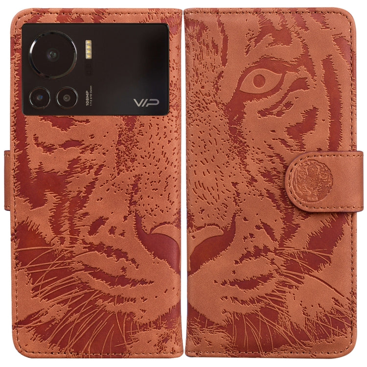 Funda de Cuero para Infinix Note 12 Vip con Tapa Horizontal y Patrón Tiger (Marrón)