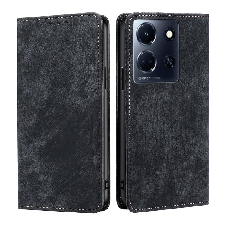 Funda de Cuero Magnética para Infinix Note 30 5G con Rfid y Cepillo Antirrobo (Negro)