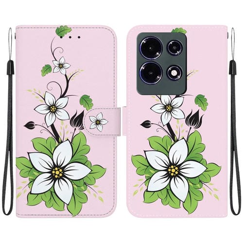 Funda de Cuero para Infinix Note 30 con Dibujo Coloreado y Textura de Cristal (Lirio)