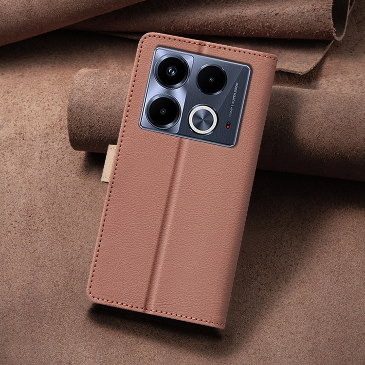 Funda de Cuero Antirrobo RFID para Infinix Note 40 4G (Marrón)