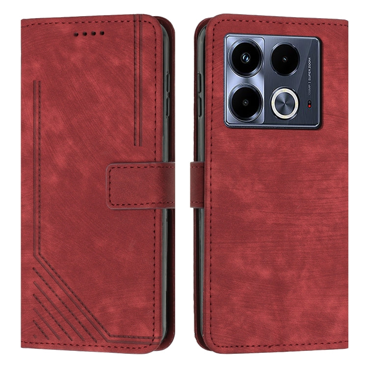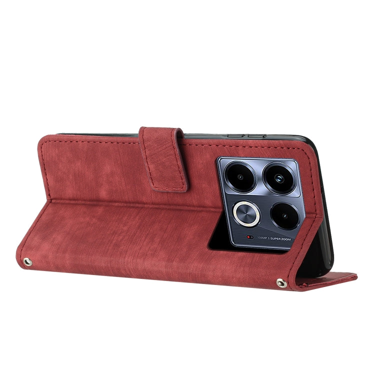 Funda de Cuero para Infinix Note 40 5G con Patrón de Rayas y Cordón (Rojo)
