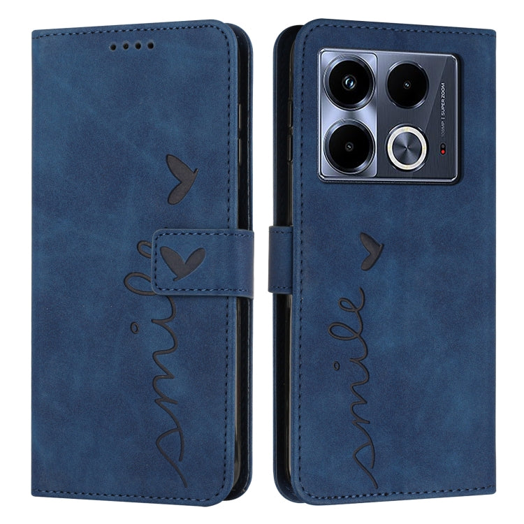 Funda para Infinix Note 40 5G Skin Feel Heart de Cuero en Relieve con Cordón Largo (Azul)