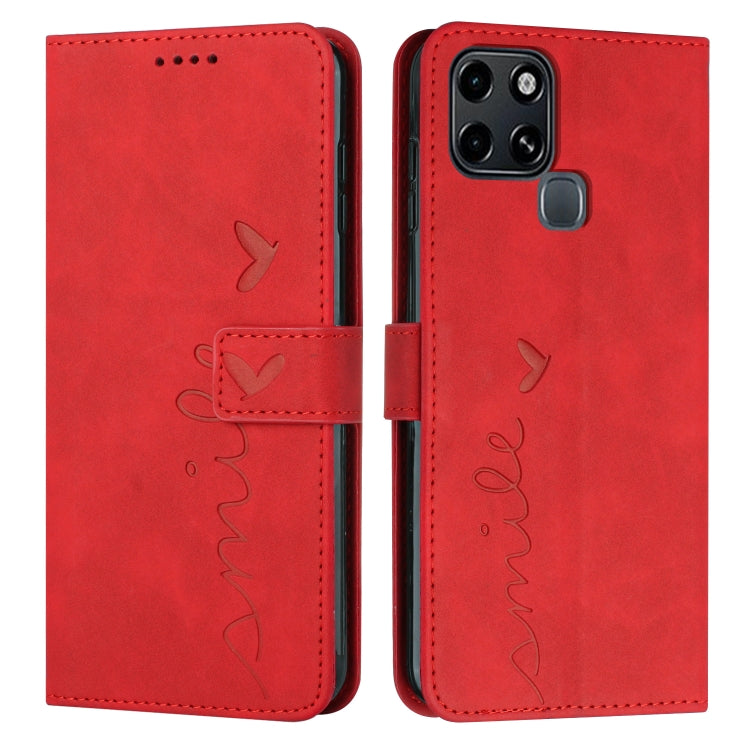 Funda para Infinix Smart 6 Skin SenTFle Heart Patrón de Cuero (Rojo)
