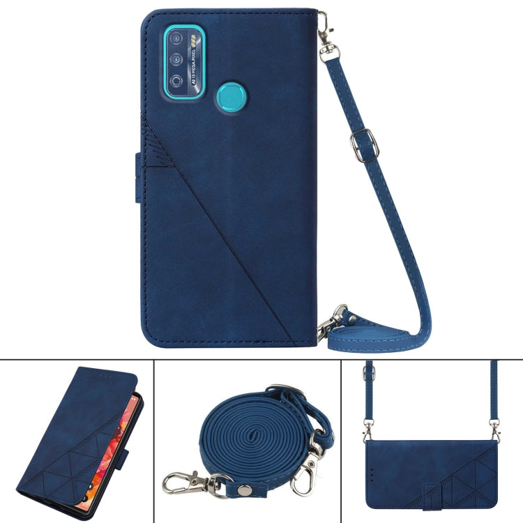 Funda Telefónica Cuero Infinix X680 Hot 9 Play Crossbody 3D Grabado En Relieve (Azul)