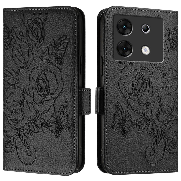 Estuche de Cuero Antirrobo Rfid para Infinix Zero 30 5G con Relieve Rosa (Negro)