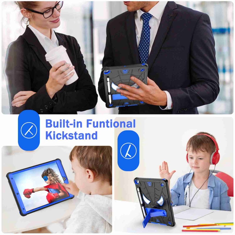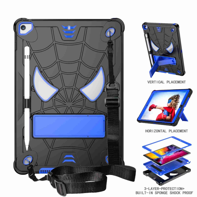 Funda Tablet iPad 10.2 2021/2020/2019 Spider Texture Silicona PC con Correa (Negro + Azul)