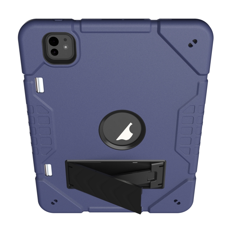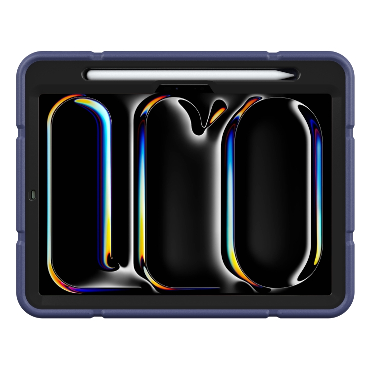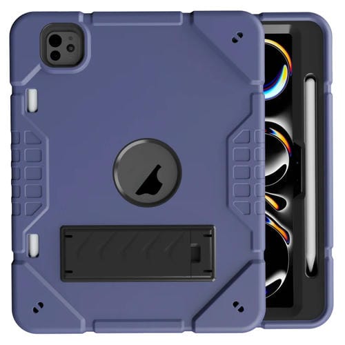 Funda híbrida Silicona para iPad Pro 11 (2024) con Soporte de Armadura (Azul Marino y Negro)