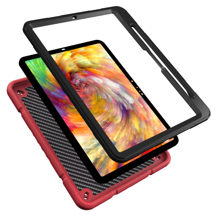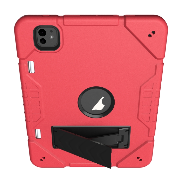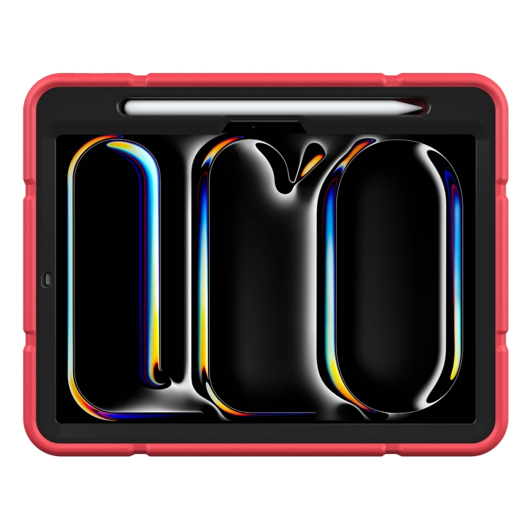 Funda híbrida de silicona para iPad Pro 11 (2024) con soporte de armadura (Rojo y negro)