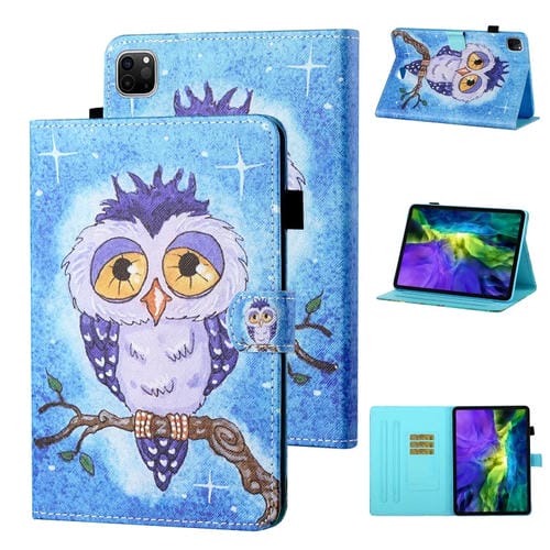 Pour iPad Pro 11 2024 Coutures colorées et étui pour tablette en cuir intelligent à motifs (chouette bleue)