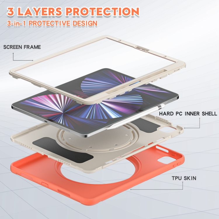 Funda Protectora para Tableta iPad Pro 12.9 2022/2021 TPU + PC Rotación 360° Mango Plegable (Living Coral)