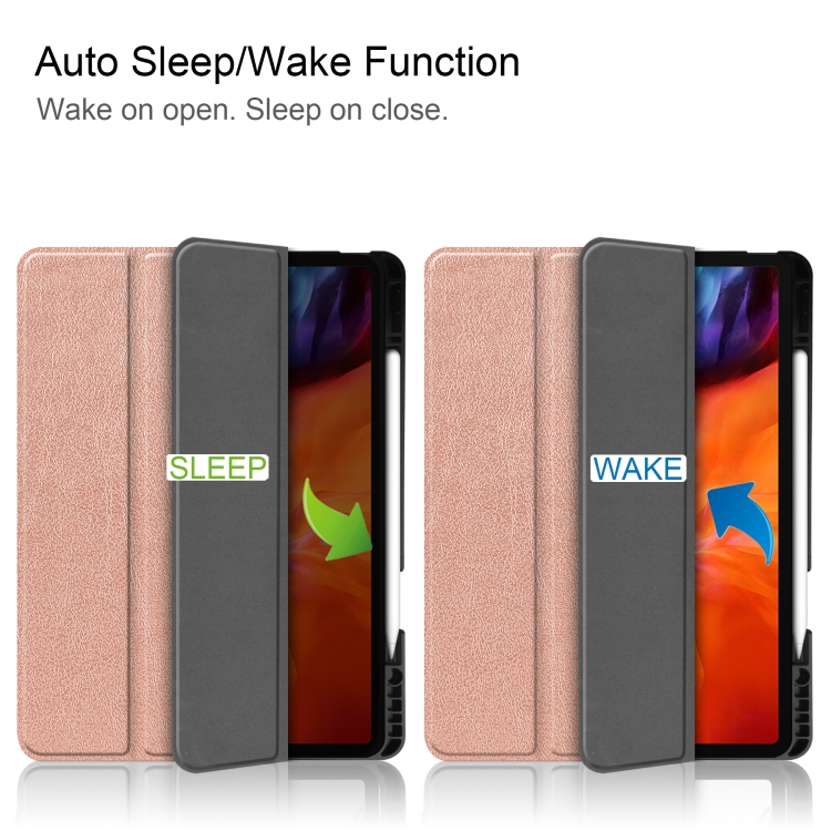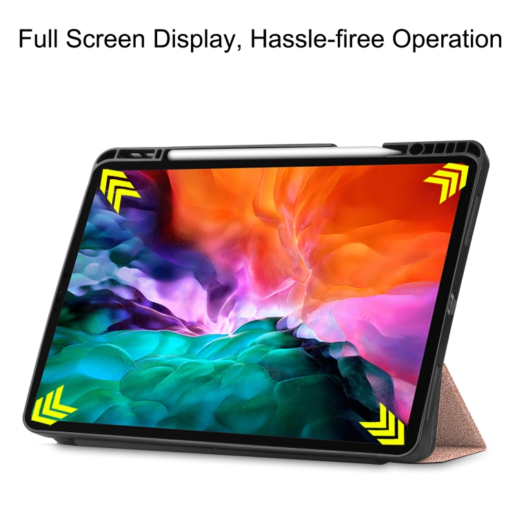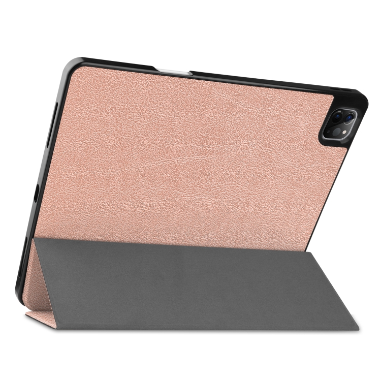 Funda para Tableta iPad Pro 12.9 2022/2021 Flip Horizontal Honeycomb TPU y PU Cuero con Tres Soportes Plegables y Ranura para Bolígrafo (Oro Rosa)