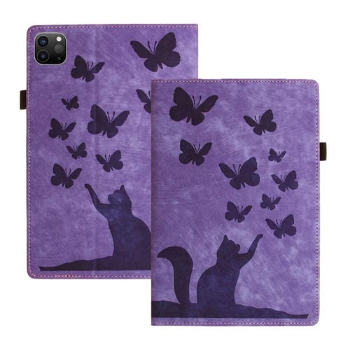Funda para Tableta iPad Pro 13 2024 Cuero Estampado Gato Mariposa (Púrpura)