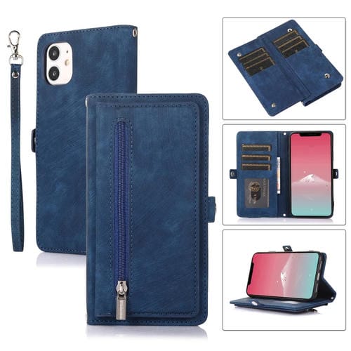 Funda para Teléfono iPhone 11 Cremallera Ranura para Tarjeta Hebilla Monedero Cuero (Azul)