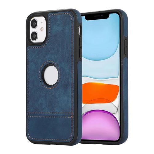 Funda para iPhone 11 Empalme Costura Caja de Teléfono de PU con Recorte Hueco (Azul)