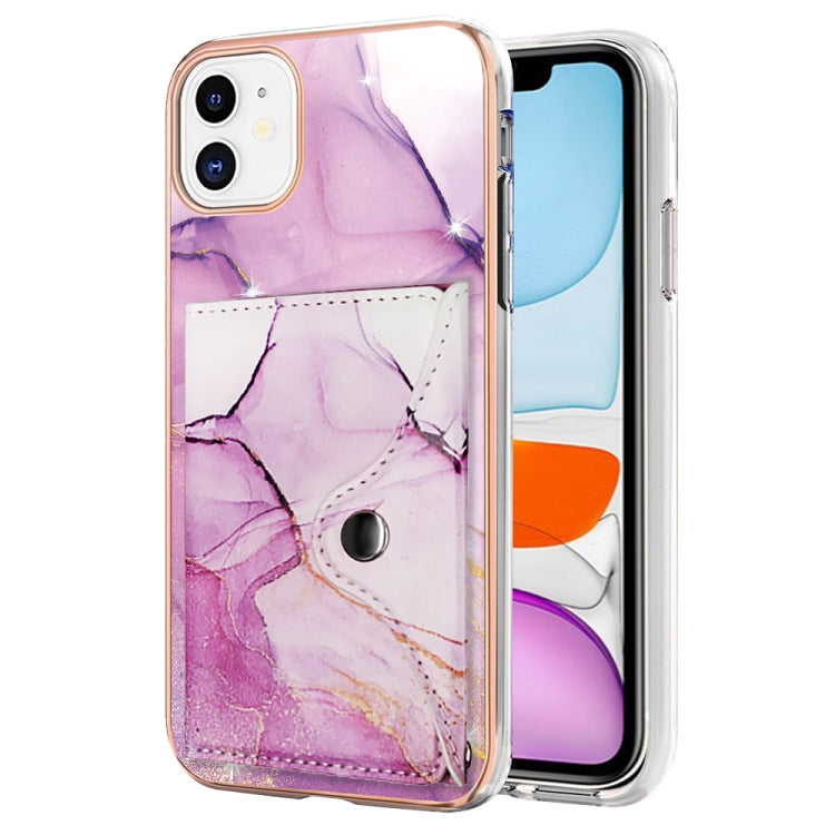 Estuche para teléfono iPhone 11 con ranura para tarjeta IMD patrón mármol (Oro Rosa, Morado)