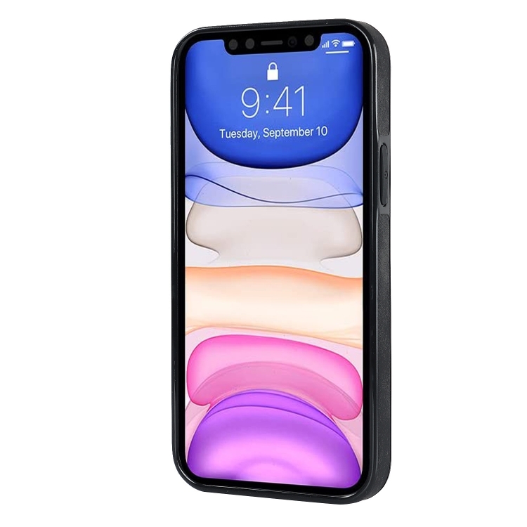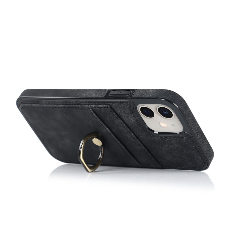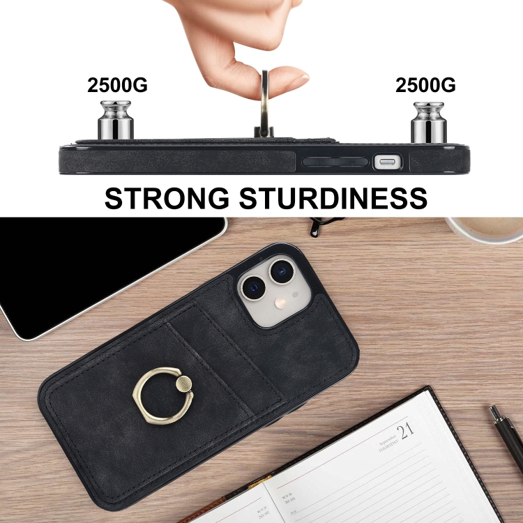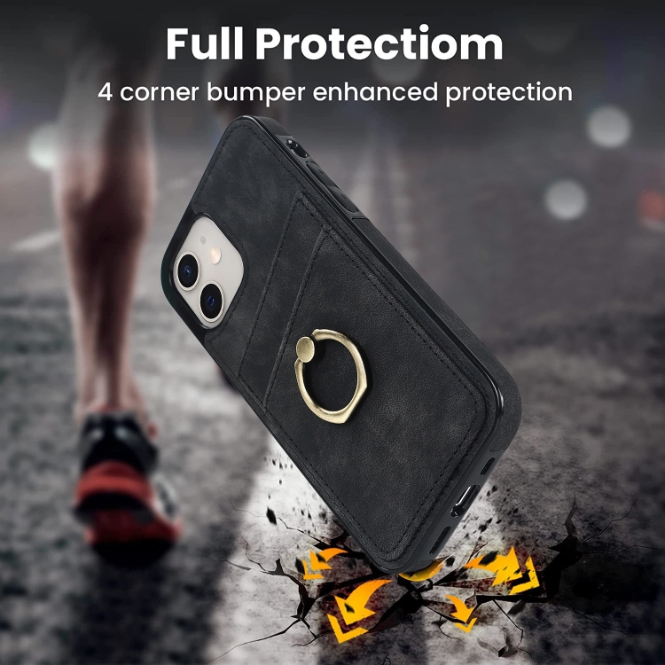Funda de Teléfono iPhone 11 Cuero con Parche Vintage y Soporte para Anillo (Negro)