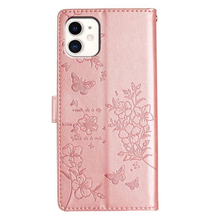 Funda para Teléfono iPhone 11 Cuero Relieve Flor de Amor y Mariposa (Oro Rosa)