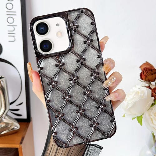Funda para teléfono TPU galvanizada para iPhone 11 con flor de estrella y papel con brillo degradado (Negro)