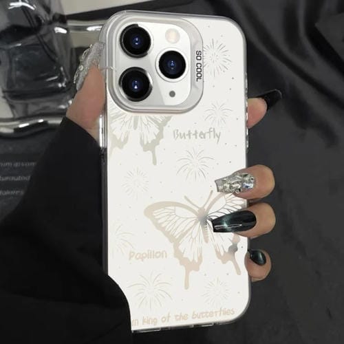 Caja de Teléfono Híbrida para iPhone 11 Pro TPU y PC Pintura Plateada (Mariposa Hueca Blanca)