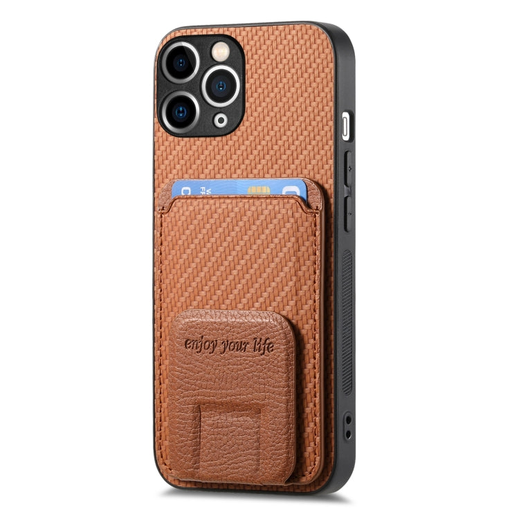 Funda para Teléfono iPhone 11 Pro con Soporte Plegable y Bolsa para Tarjetas Fibra de Carbono (Marrón)