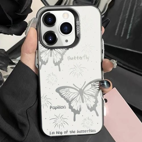 Caja de teléfono híbrida TPU para iPhone 11 Pro Max con pintura plateada y mariposa hueca negra