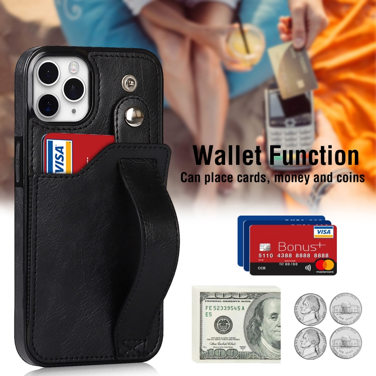 Funda para iPhone 11 Pro Max Crazy Horse Texture Cuero TPU + PU a Prueba de Golpes con Ranura para Tarjeta y Correa (Negro)