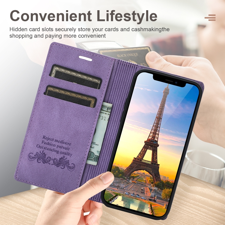 Funda para iPhone 11 Pro Max Dream Succión Magnética Business Cuero de Pu con Tapa Horizontal Soporte Ranura Tarjeta Billetera (Púrpura)