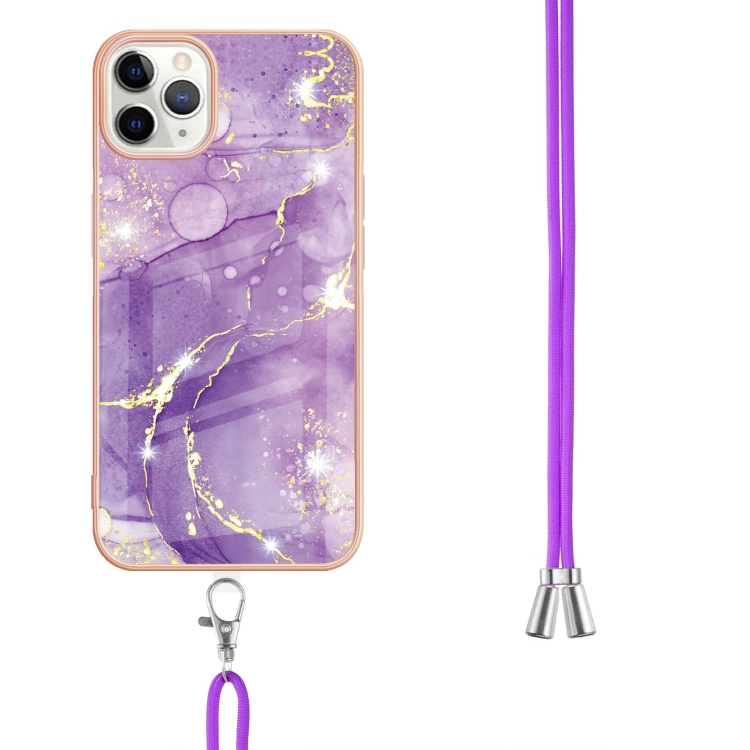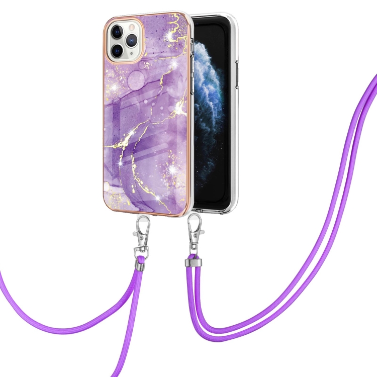 Estuche TPU para iPhone 11 Pro Max Galvanoplastia Patrón Mármol a Prueba de Golpes con Cordón (Púrpura)