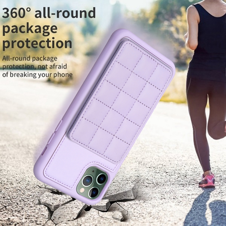 Pour iPhone 11 Pro Max Grid Card Slot Phone Case (Violet clair)
