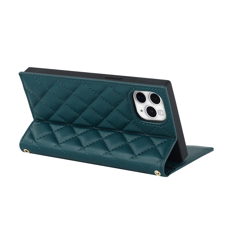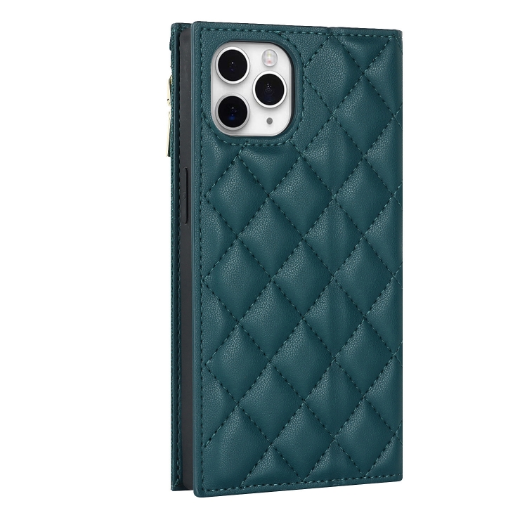 Funda de Cuero para iPhone 11 Pro Max Grid Texture con Lanyard y Cremallera (Verde)