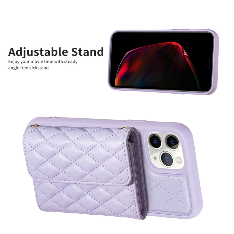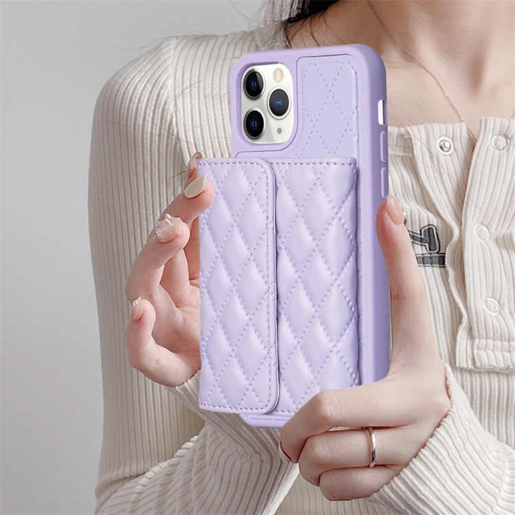 Pour iPhone 11 Pro Max Étui de téléphone en cuir rhombique à portefeuille horizontal (violet)