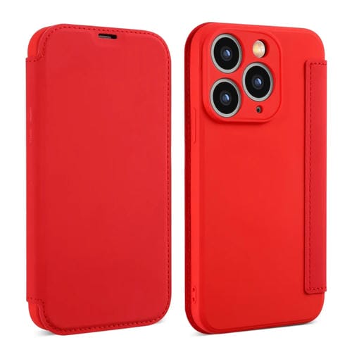 Funda para Teléfono iPhone 11 Pro Max Imitación Cuero Piel Líquida Ranuras para Tarjetas (Rojo)