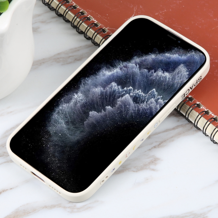 Pour iPhone 11 Pro Max Étui de téléphone à bord droit en silicone à motif d'astronaute (Planet Landing-Blanc)