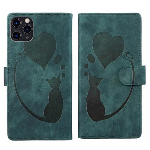 Funda de Cuero para iPhone 11 Pro Max Pen Heart Cat En Relieve (Verde)