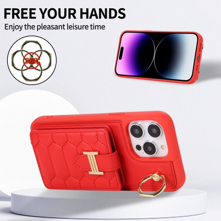 Pour iPhone 11 Pro Max Sac de carte vertical Porte-anneau Étui de téléphone avec double lanière (rouge)