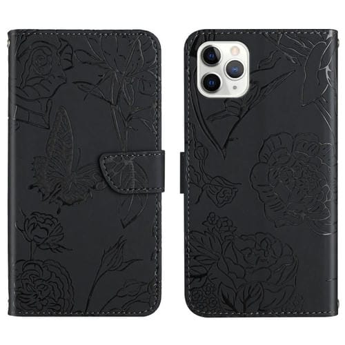 Funda para iPhone 11 Pro Skin Feel Butterfly Peony Cuero en Relieve (Negro)