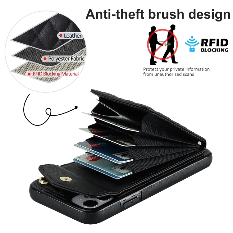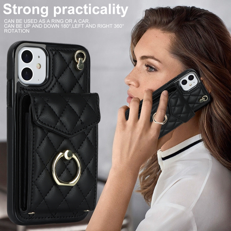 Funda para Teléfono iPhone 11 Rhombic Texture Card Bag con Cordón Largo (Negro)