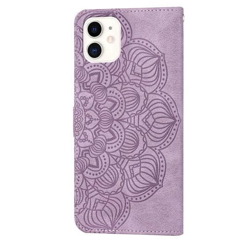Funda de Cuero para iPhone 12 Mini Mandala con Tapa En Relieve (Púrpura)