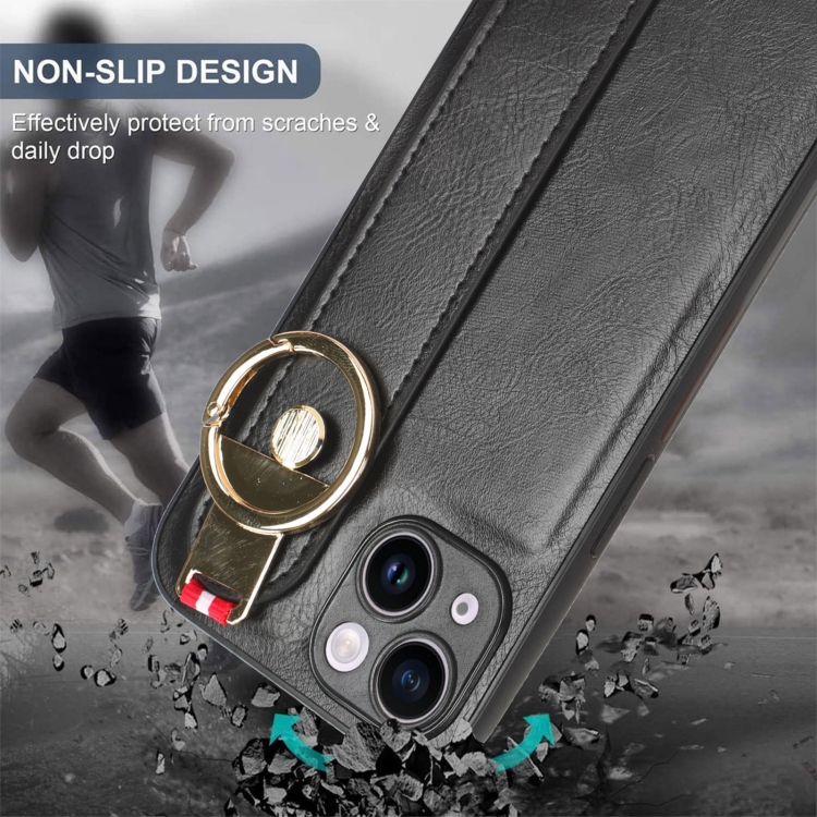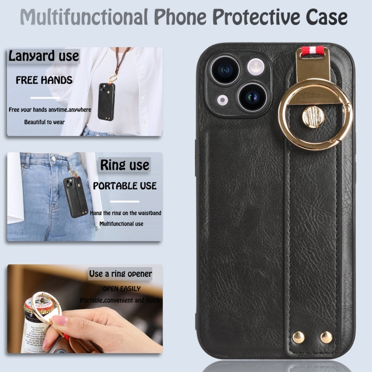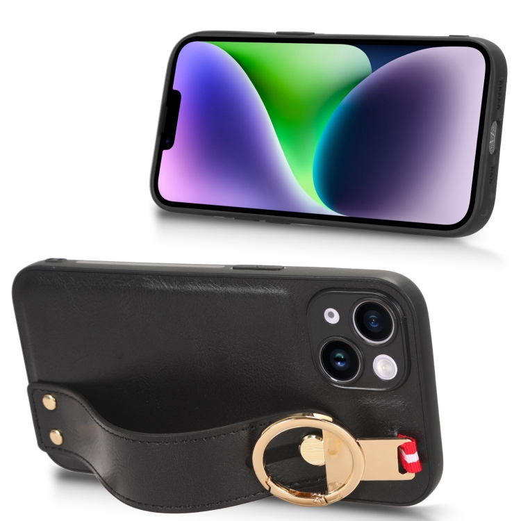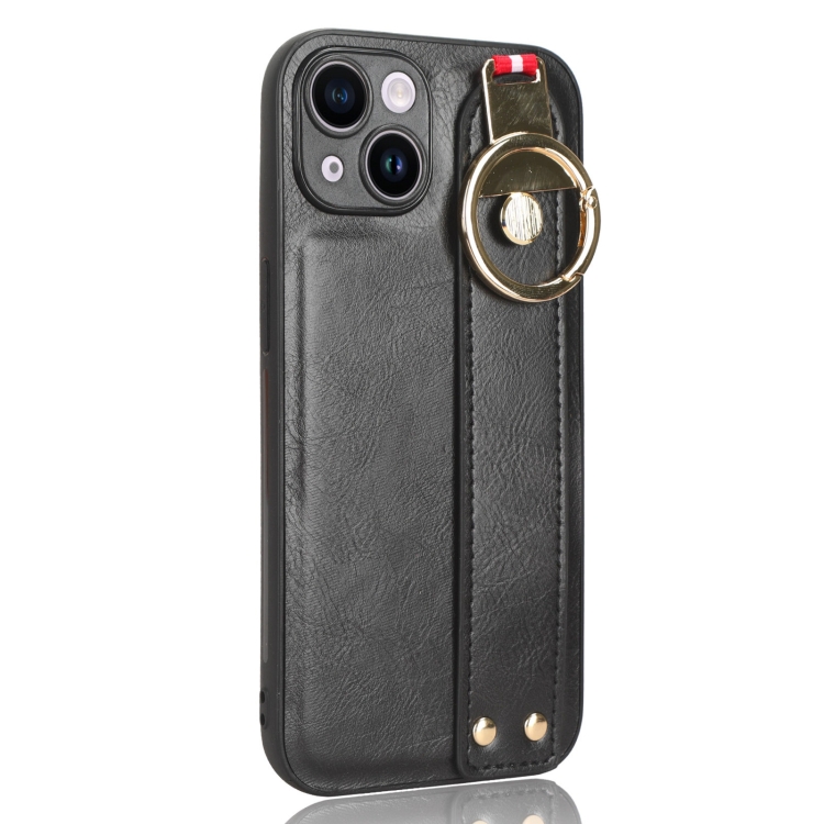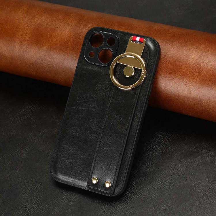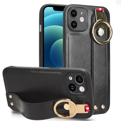 Funda Trasera de Cuero Muñequera para iPhone 12 Mini (Negro)