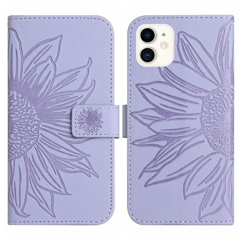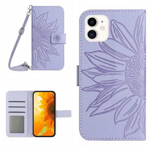 Funda de Cuero iPhone 12 Mini Skin Feel Sun Flower Flip con Cordón (Púrpura)