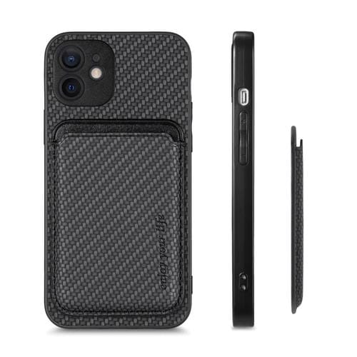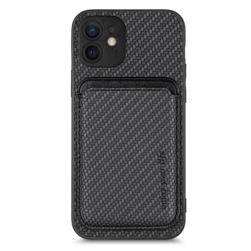 Funda para iPhone 12 Mini Tarjeta de Cuero Fibra de Carbono Magsafe Magnética (Negro)