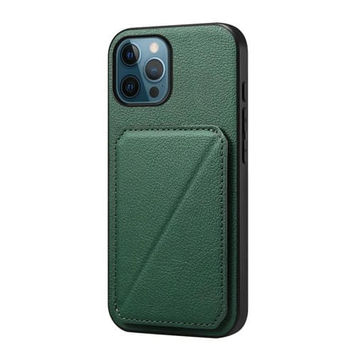 Funda para Teléfono iPhone 12 Pro D04 con Ranura para Tarjeta Dual Textura de Becerro (Verde)