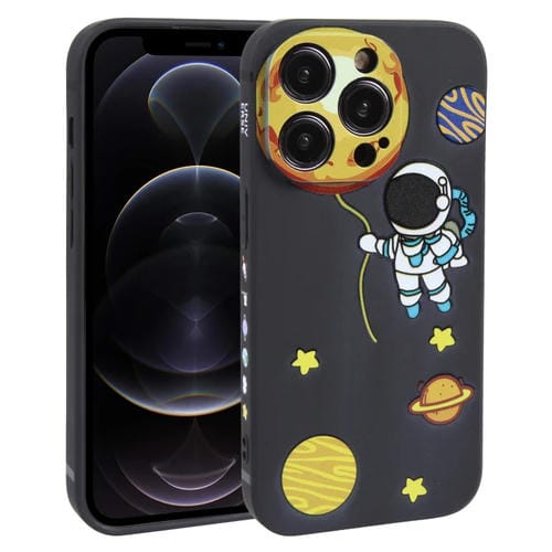 Funda TPU para iPhone 12 Pro Hug Moon Astronaut Pattern (Negro)