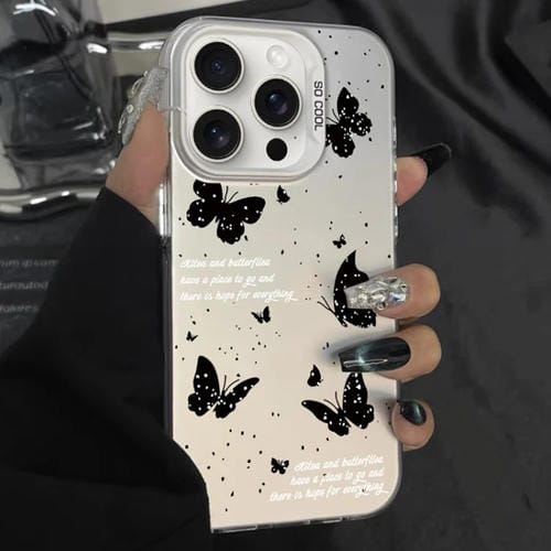 Pour iPhone 12 Pro Max Silver Paint PC TPU Hybrid Phone Case (Papillon à encre blanche)