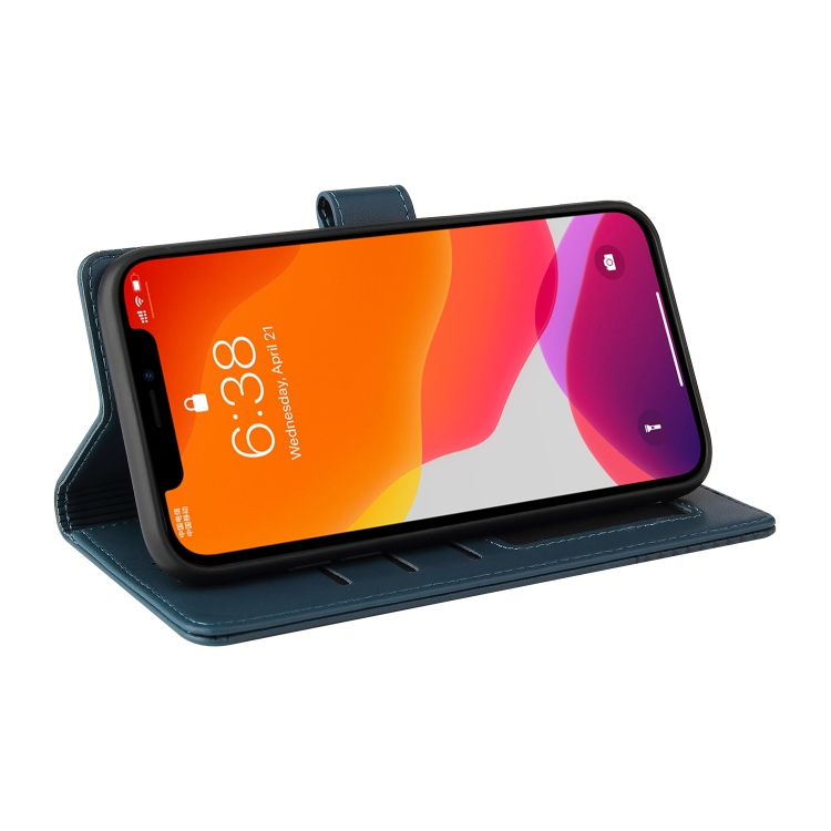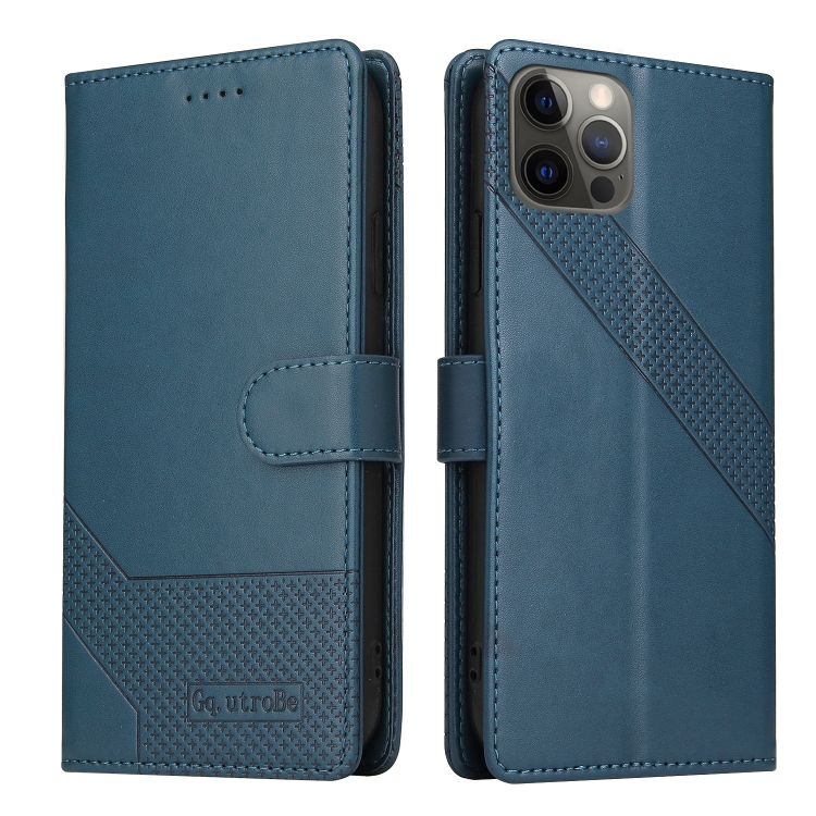 For iPhone 12 Pro Max GQUTROBE Skin Feel Magnetic Leather Phone Case (Blue)